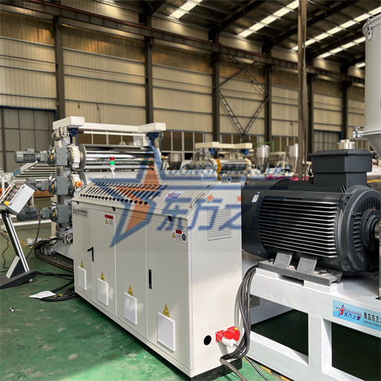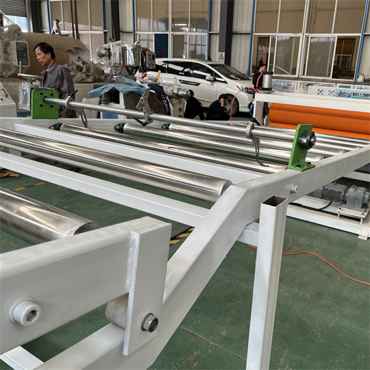 Thiết bị tấm chống tĩnh điện PVC: Thiết bị chủ yếu bao gồm máy đùn trục vít đơn 120, máy cán ba con lăn, khung làm mát, máy kéo con lăn cao su, máy cắt và