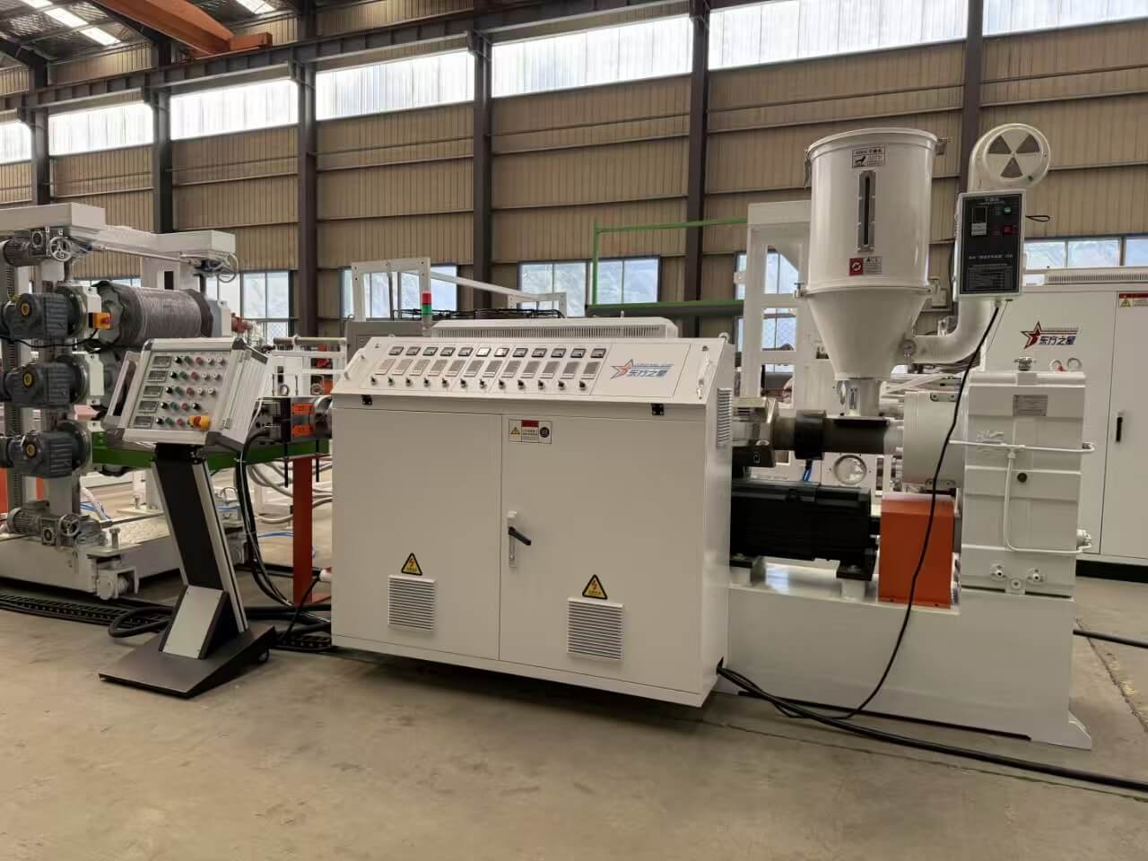 Dây chuyền ép đùn tấm rộng TPU/PE/PP/PS-300 thích hợp để xử lý dạng viên TPU/PE/PP/PS hoặc hỗn hợp nghiền.